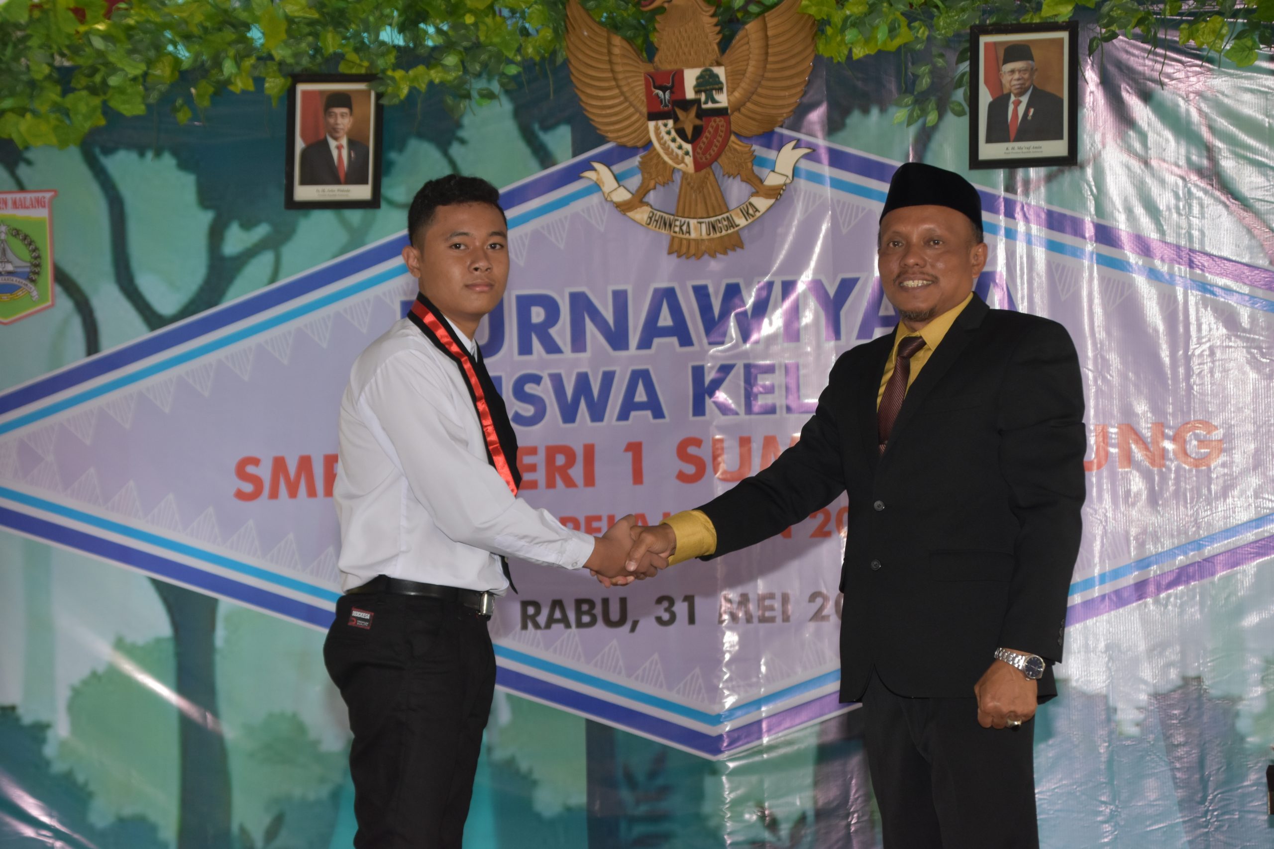 Acara Wisuda Purna Siswa-Siswi Kelas IX SMPN 1 Sumberpucung Tahun Pelajaran 2022/2023 digelar pada Rabu, 31 Mei 2023. Tepat pukul 08.00 kirab wisudawan wisudawati dilaksanakan. Didampingi para wali kelas, peserta didik kelas IX berjalan menuju kursi wisudawan yang telah disediakan di depan panggung. Diiringi musik gamelan, mereka perlahan menuju ke kursi.